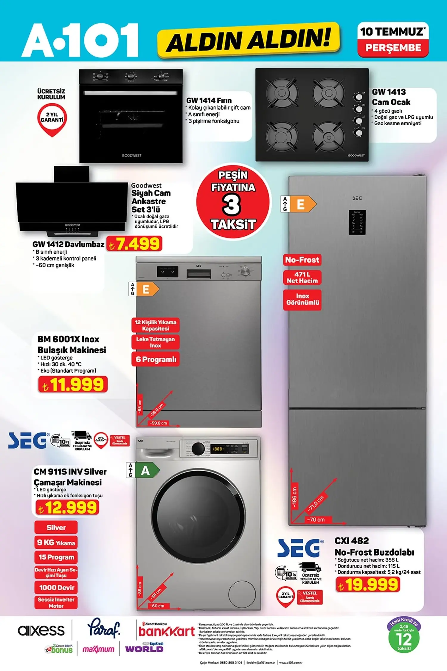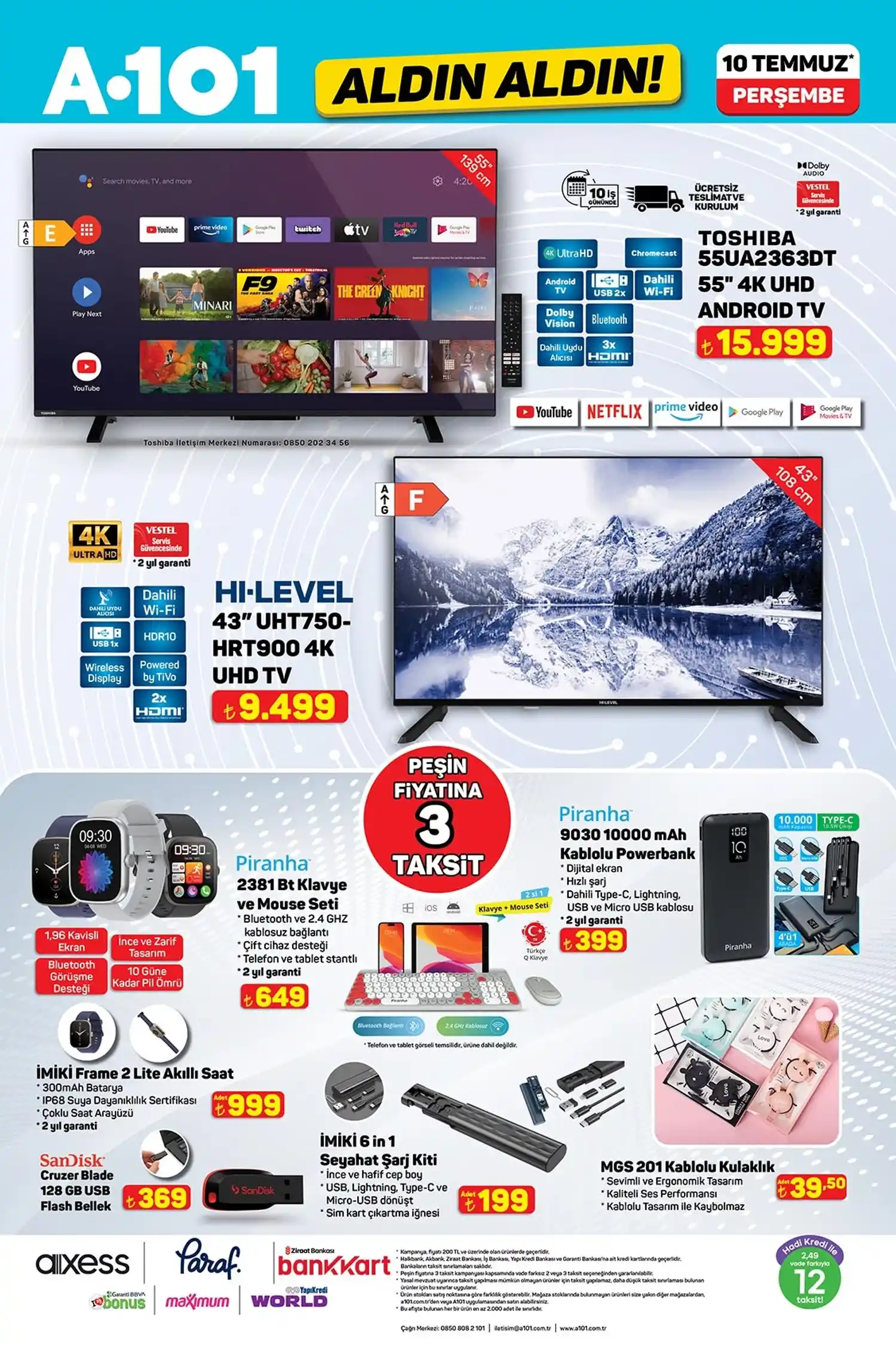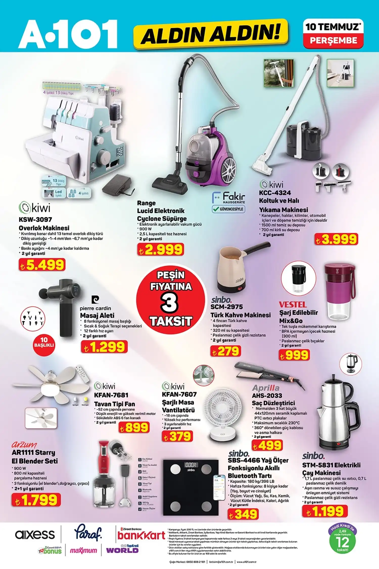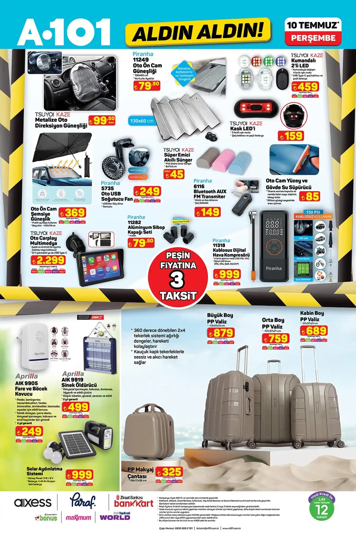 A101 10 Temmuz 2025 Aktüel Kataloğu ile Temmuz dönemi haftalık indirim kampanyalarına harika ürünlerle bir yenisini daha ekleyen A101 Market Aldın Aldın etiketi ile hazırladığı A101 Aktüel Kataloğu karşınızda. işte tüm ürünlerde peşin fiyatına 3 taksit fırsatı içeren bir aktüel ürünler kataloğu.