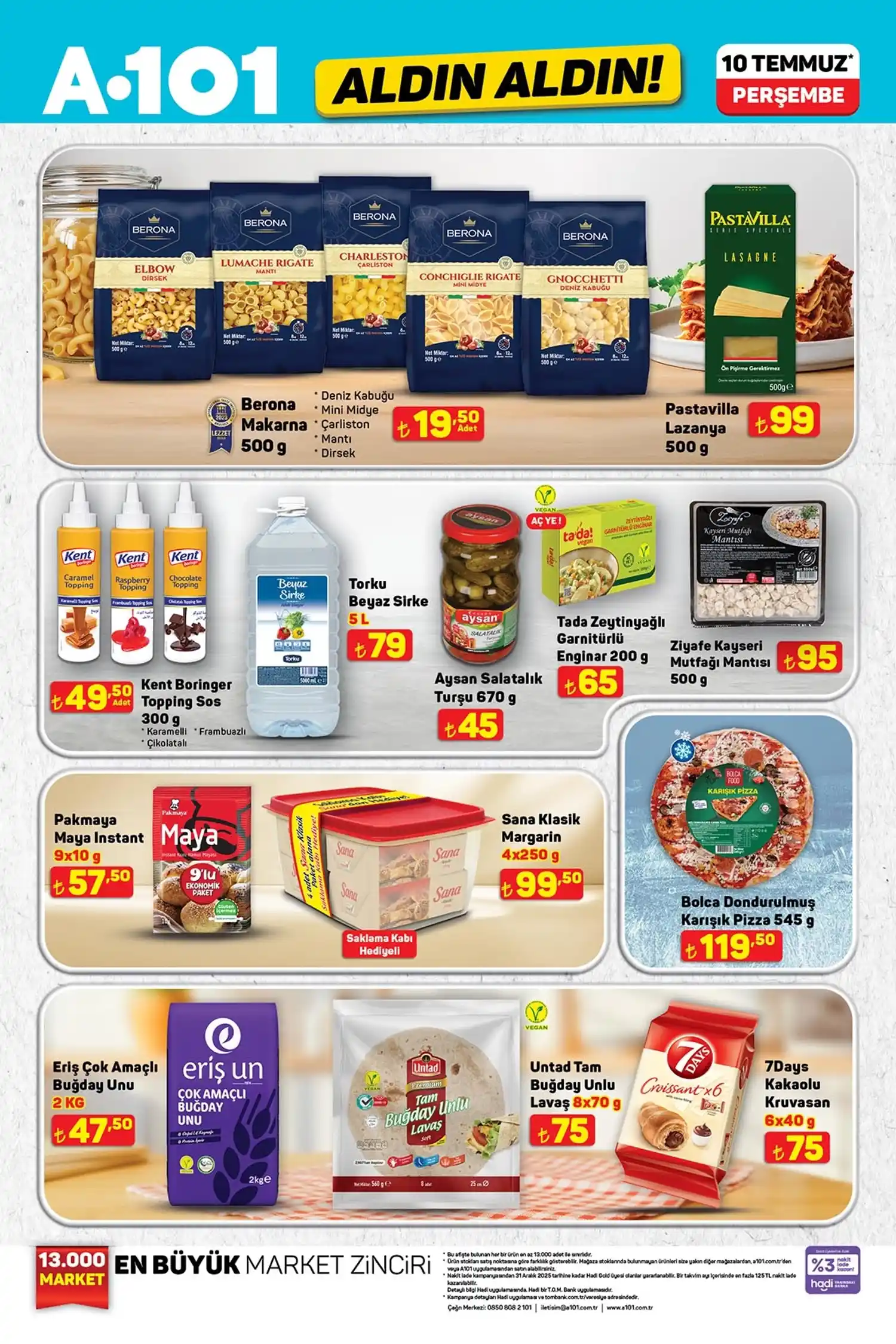 A101, “Aldın Aldın” kampanyası etiketiyle 10 Temmuz 2025 Perşembe gününden itibaren geçerli olacak yeni haftanın fırsat ürünlerini mağazalarına taşıyor. İşte A101 Market’in Türkiye genelindeki tüm mağazalarında, A101 Online sitesinde ve A101 Kapıda seçeneğiyle satışa sunacağı 10 Temmuz A101 Aktüel Kataloğu’ndaki kampanyalı ürünlerin incelemesi: