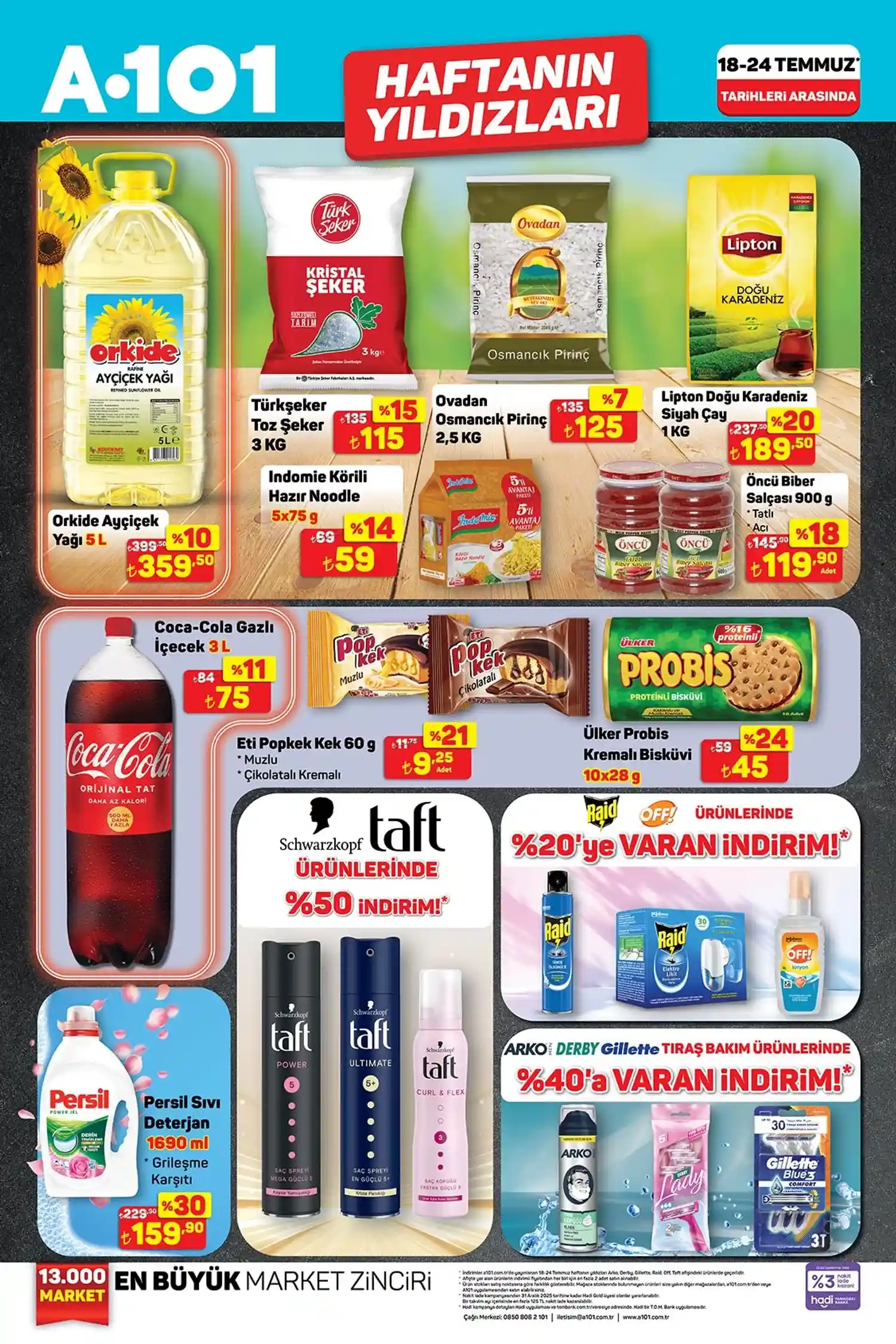 - A101 Market, 18 Temmuz 2025 tarihinden itibaren geçerli olacak yeni cazip kampanyalarını indirimli bir şekilde sunuyor haydi gelin A101 market 18 Temmuz 2025 günü neler sunacak hemen bakalım.