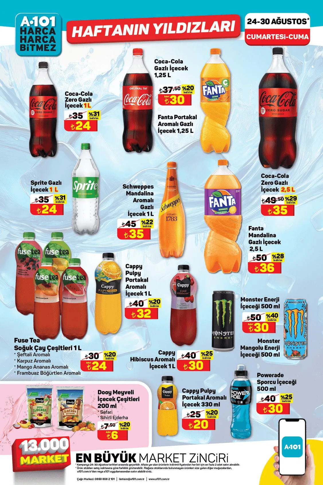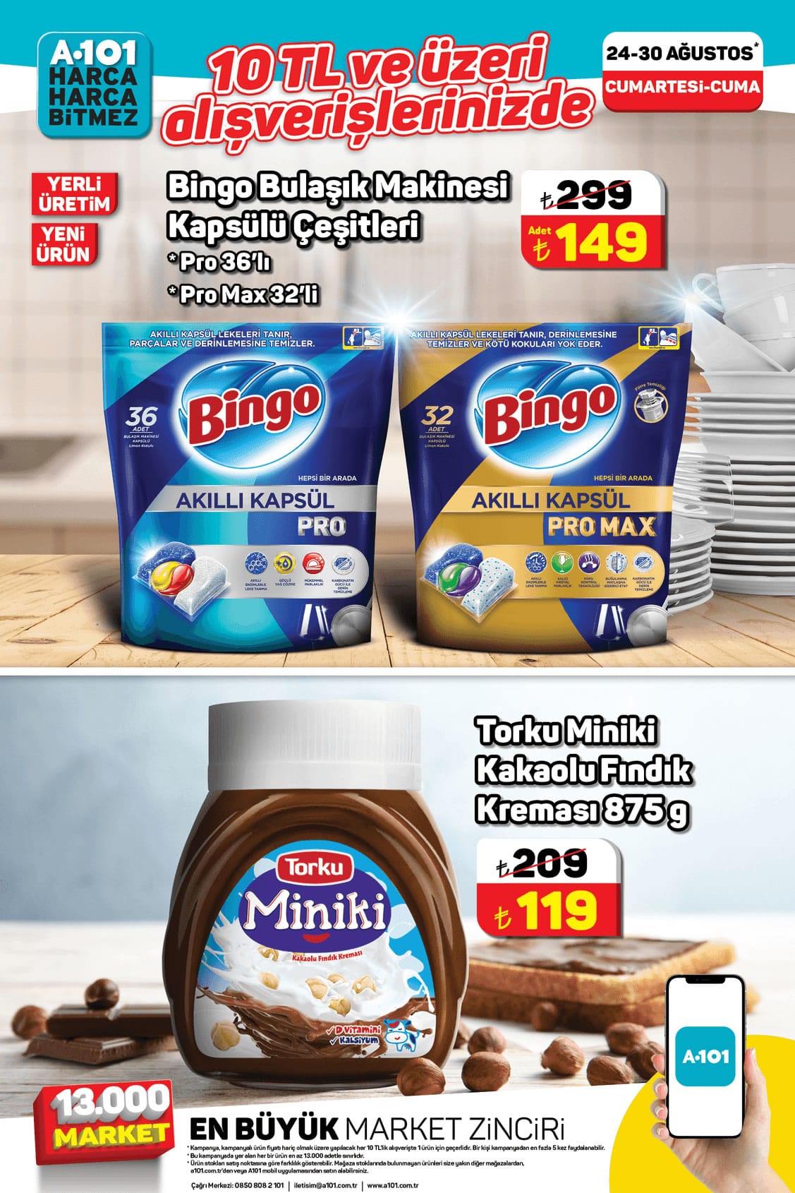 A101 Haftanın Yıldızları kampanyasında Rinso Toz Deterjan, Pril Bulaşık Deterjanı, Cumhuriyet Dana Kangal Sucuk ve Çaykur Tiryaki Siyah Çay gibi ürünlerde avantajlı fiyatları görüyoruz. A101 24 Ağustos 2024 Aktüel Ürünler Kataloğu ile bu hafta indirimli olarak satışa sunulacak tüm ürünlere sayfanın devamından ulaşabilirsiniz.A101’de bu hafta geçerli olacak 10 TL üstü alışverişlerde Bingo Bulaşık Makinesi Kapsülü Çeşitleri için 299 TL yerine 149 TL veı 875 gram Torku Miniki Kakaolu Fındık Kreması için ise 209 TL yerine 119 TL indirimli fiyat sunulacak.Hemen A101 24 Ağustos 2024 Aktüel Ürünler Kataloğu incelememizde gördüğümüz fırsat ürünlerini ve bu ürünlerin indirimli fiyatlarını listeleyelim;