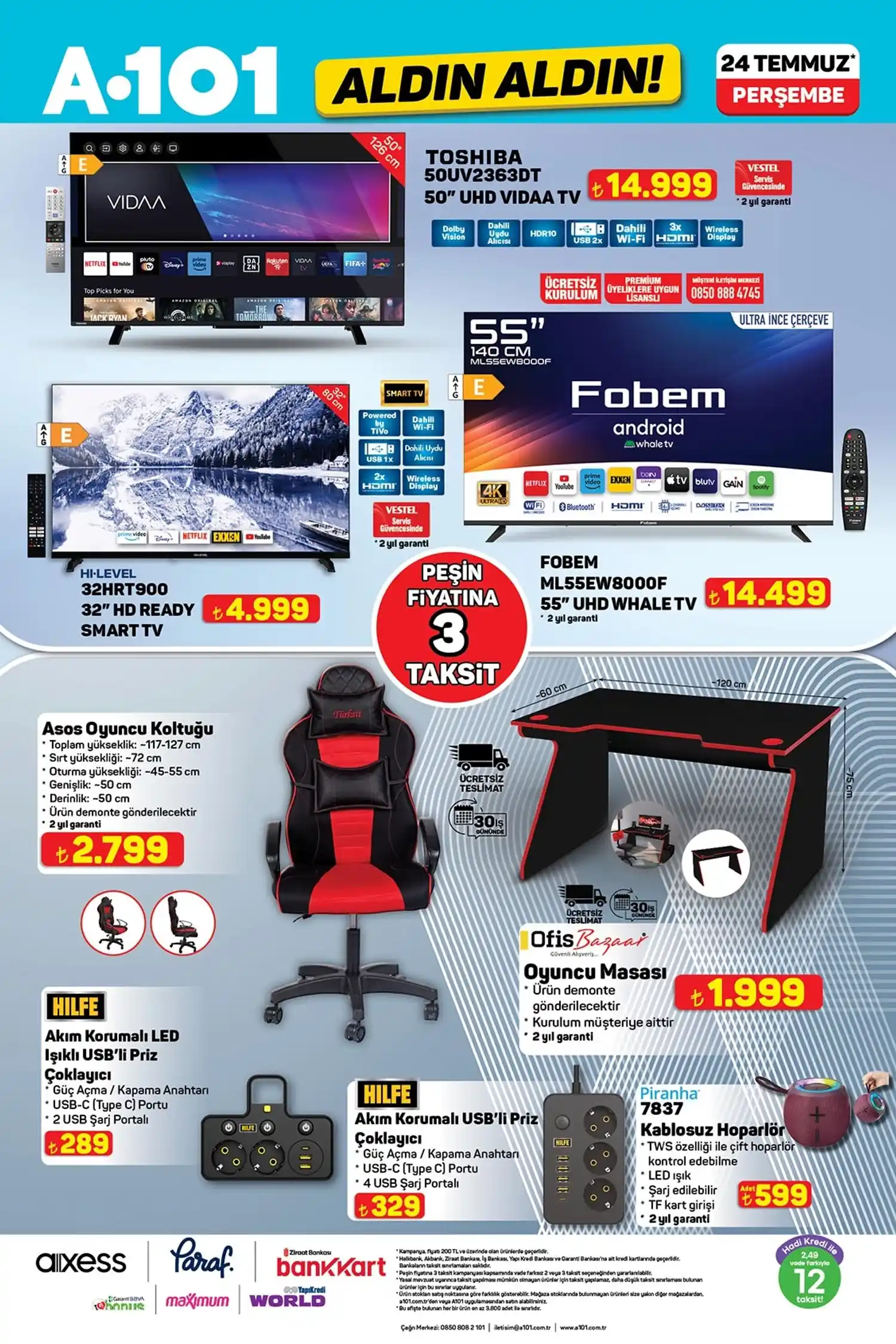 - A101’in 24 Temmuz 2025 Perşembe tarihli kataloğunda öne çıkan ürünlerin özeti aşağıdadır: