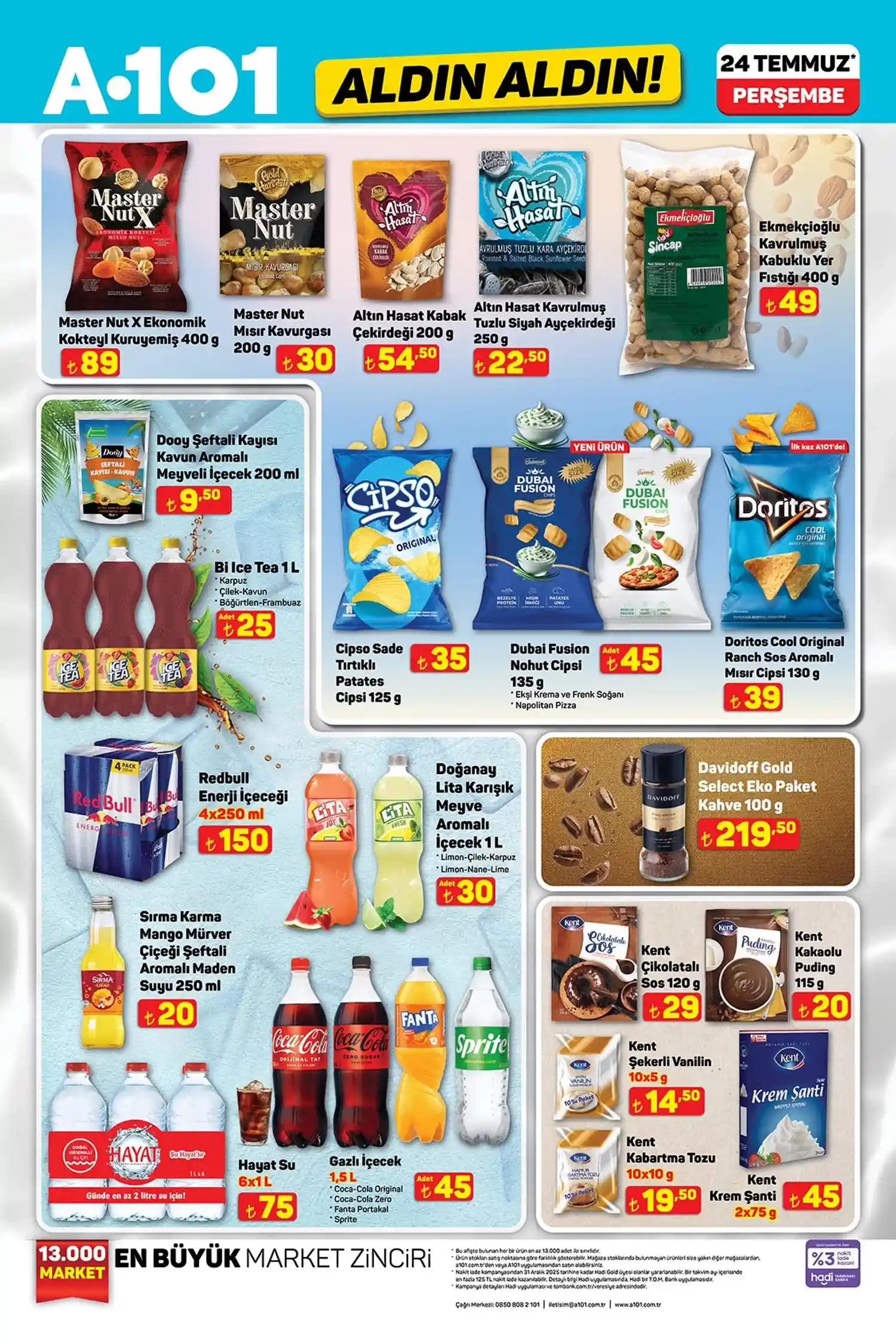 - A101 Market, 24 Temmuz 2025 tarihinden itibaren geçerli olacak yeni cazip kampanyalarını indirimli bir şekilde sunuyor haydi gelin A101 market 24 Temmuz 2025 günü neler sunacak hemen bakalım.