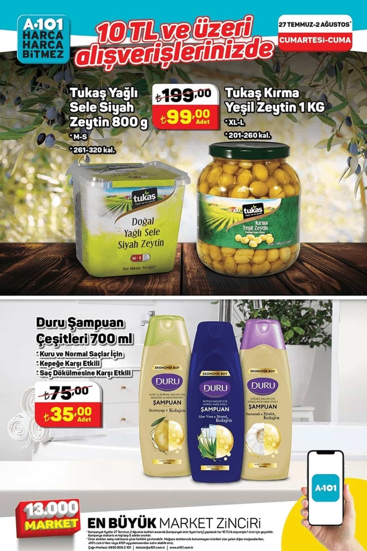 A101 Marketleri 27 Temmuz 2024 tarihinde reyonlarında hangi ürünlere yer vericek merakla beklenen 27 Temmuz 2024 A101 Aktüel Kataloğu Yatınlandı. Birbirinden Muhteşem indirimlerin olduğu A101 27 Temmuz 2024 Aktüel ürünler kataloğunda öne cıkan 10TL ve ürezi alışverişlerinizde geçerli olmak üzere Tukaş Yağlı Sele Siyah Zeytin 199TL Yerine Sadece 99TL. Tukaş Kırma Yeşil Zeytin 1KG 199TL yerine sadece 99TL den satışa sınıluyor.
