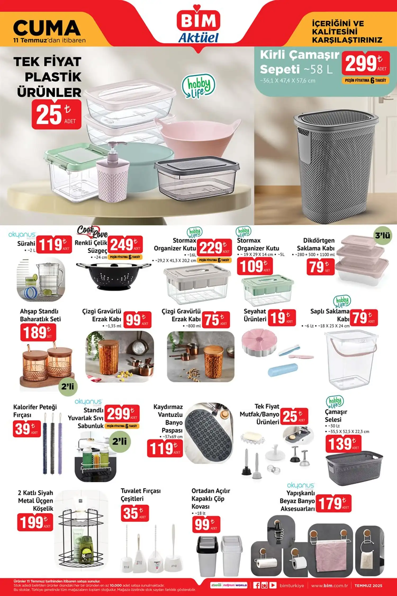 BİM, “İçeriğini ve Kalitesini Karşılaştırınız” ve “CUMA – 11 Temmuz’dan itibaren” sloganlarıyla yeni haftanın kampanyalarını sunuyor. İşte BİM Market’in Türkiye genelindeki tüm mağazalarında 11 Temmuz 2025 Cuma gününden itibaren satışa sunacağı aktüel ürünlerin detaylı incelemesi: