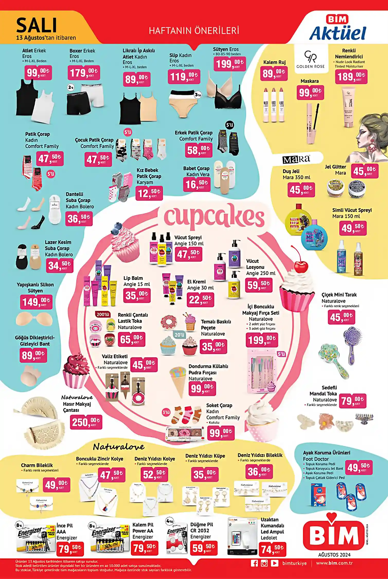 13 Ağustos BİM Aktüel kataloğunda bu hafta İçim Sandviç ve Tost Peyniri 2000 gr 395TL,Naturalove Hasır Makyaj Çantası 250TL,Eros Sütyen 199TL,Naturalove İçi Boncuklu Makyaj Fırça Seti 199TL,Danet Anadolu Dana Köfte 500 gr 199TL,Golden Rose Renkli Nemlendirici 189TL,Polonez Sucuk Dana Fermente 500 gr 189TL,Eros Erkek Boxer 2’li 179TL,Yapışkanlı Silikon Sütyen 149TL,Sek Yarım Yağlı Yoğurt 5 Kg 149TL,Sek Tereyağı 400 gr 129TL,Eros Kadın Slip 3’lü 119TL,İçim %3 Yağlı Yoğurt 3 Kg 109TL, gibi ürünlerde cazip fiyatlar sunuluyor. BİM 13 Ağustos 2024 Aktüel Ürünler Kataloğu ile bu hafta gelecek tüm ürünlere sayfanın devamından ulaşabilirsiniz.BİM Aktüel kategorisinde güncel tüm kampanyaları takip edebilirsiniz. Salı gününden itibaren geçerli olacak BİM 13 Ağustos 2024 Aktüel Ürünler Kataloğu ve gelecek hafta Salı günü başlayacak BİM 20 Ağustos 2024 Haftanın Önerileri kataloglarına BİM Aktüel kategorimizden göz atabilirsiniz.Hemen Salı gününden itibaren geçerli olacak BİM 13 Ağustos 2024 Aktüel Ürünler Kataloğu ile gelecek ürünleri ve bu ürünlerin cazip fiyatlarını listeleyelim;