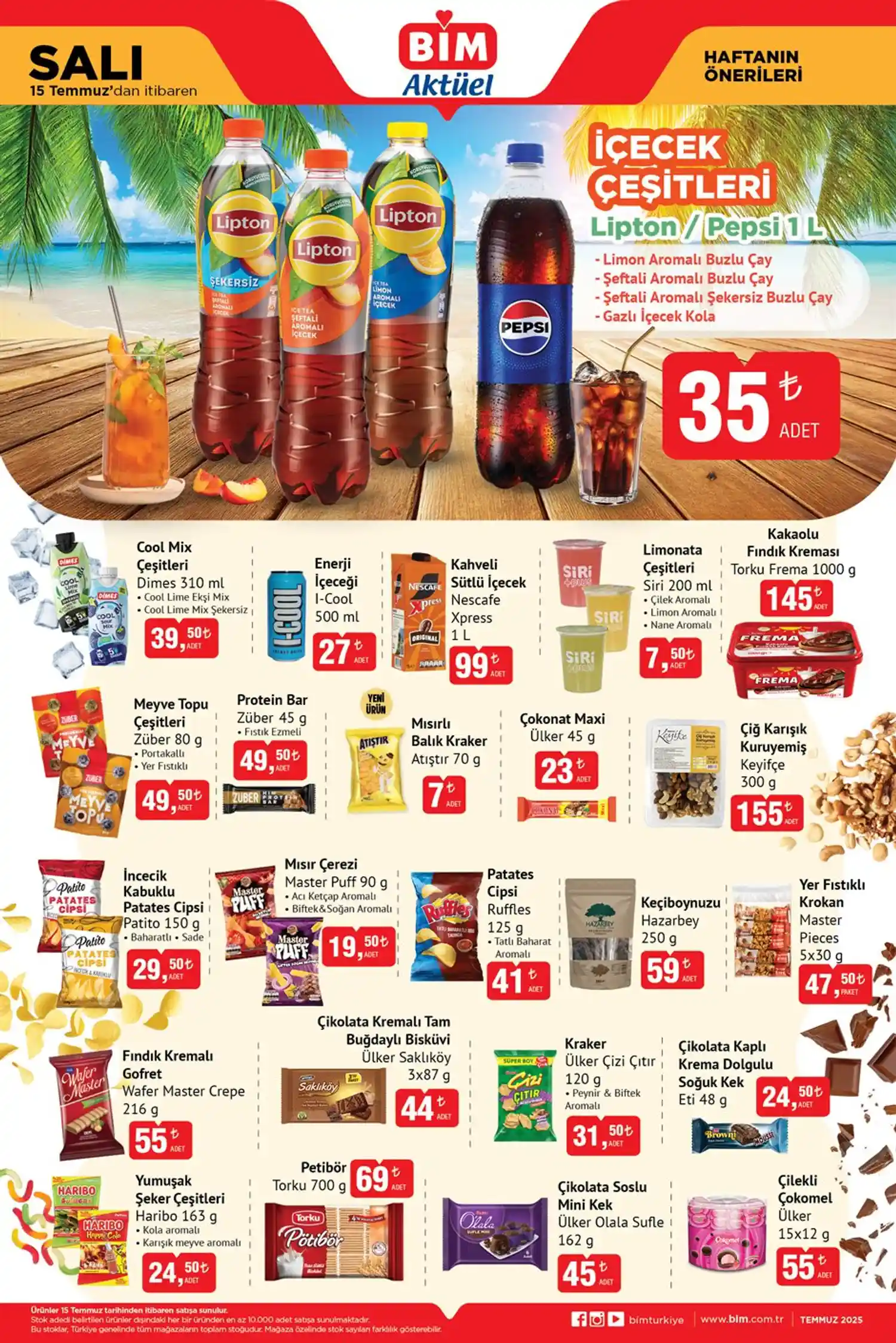 - Lipton/Pepsi 1 L İçecek Çeşitleri: Farklı aromalar (Limon Aromalı Buzlu Çay, Şeftali Aromalı Buzlu Çay, Şeftali Aromalı Şekersiz Buzlu Çay, Gazlı İçecek Kola). ₺35.