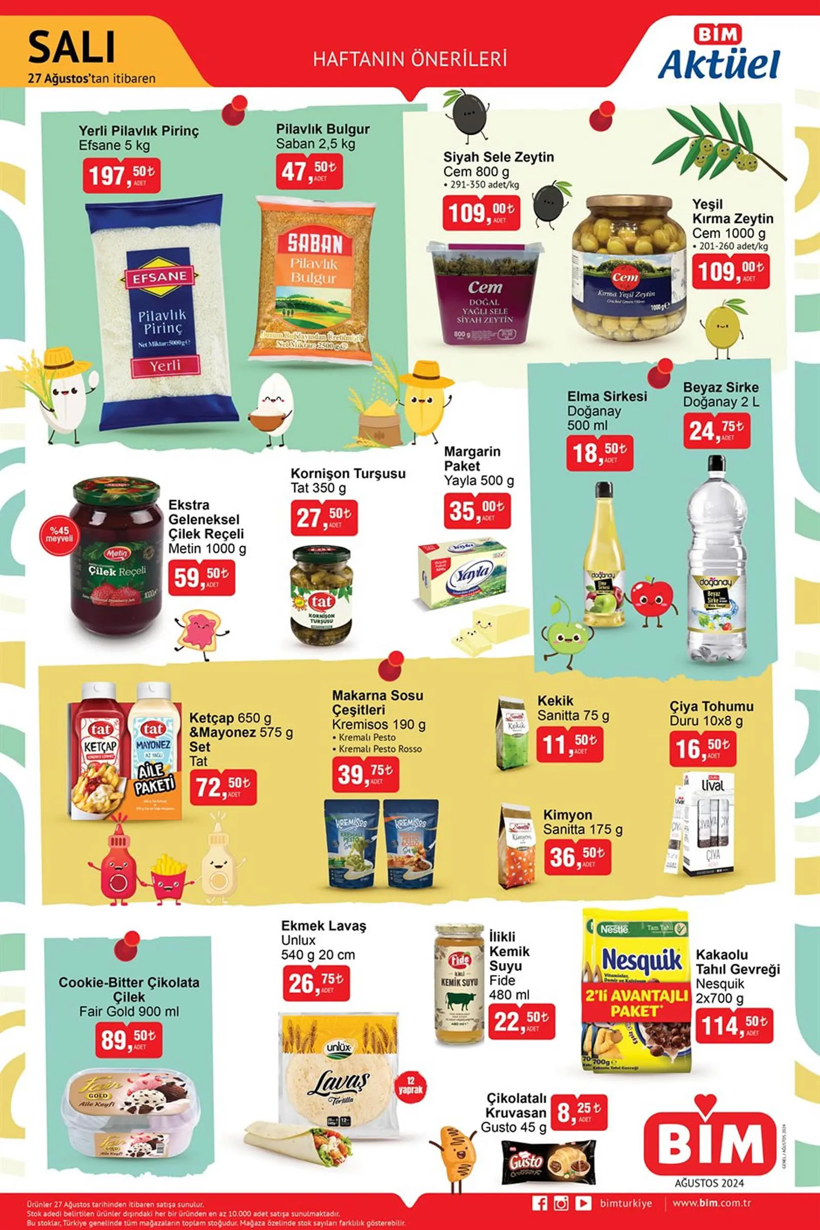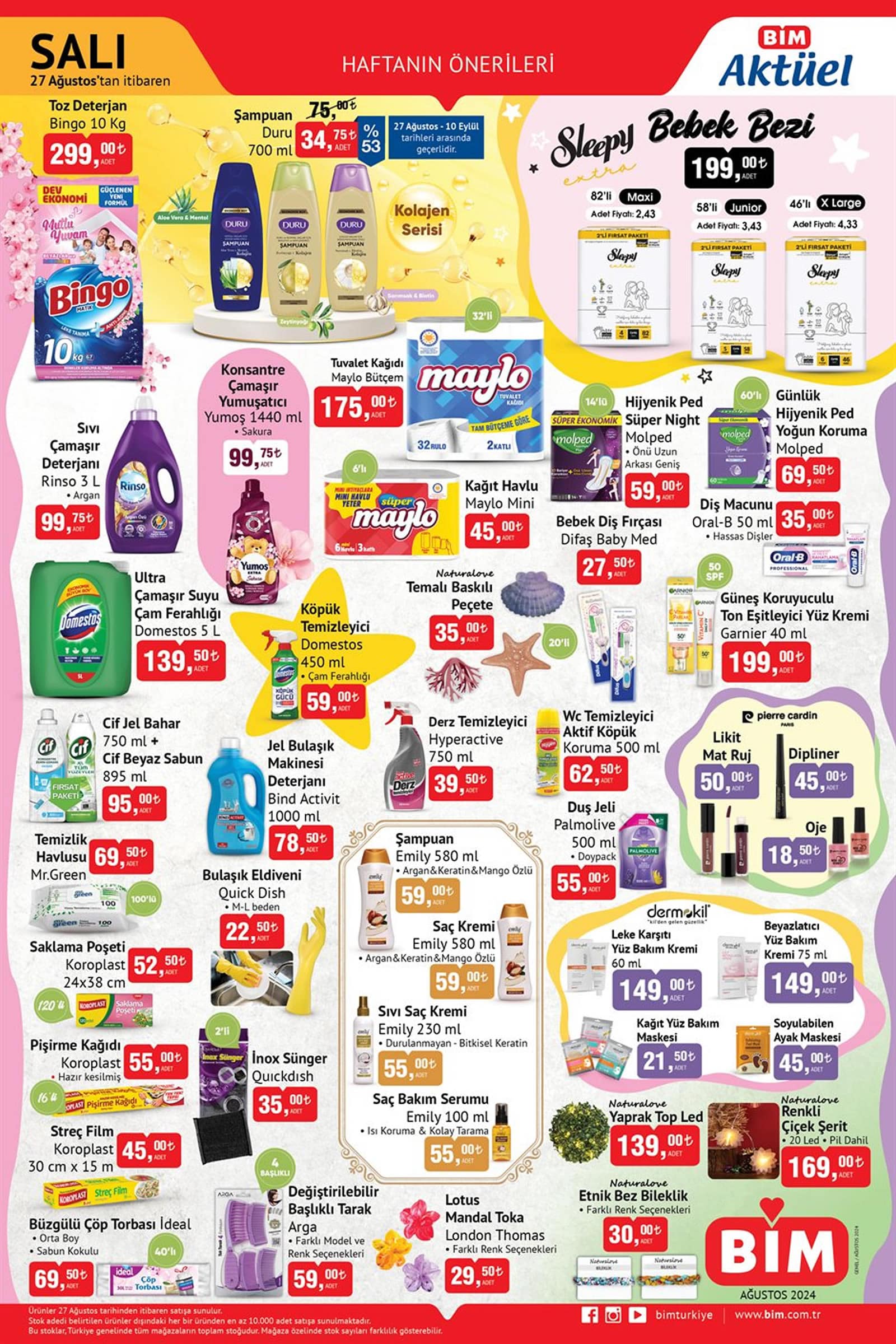 BİM 27 Ağustos 2024 Aktüel Ürünler Kataloğu Yayınlandı. BİM Market 27 Ağustos ile 3 Eylül 2024 tarihleri arasında geçerli olacak Ağustos ayının son haftanın önerileri kataloğunu yayınladı. BİM’de 27 Ağustos 2024 Salı gününden itibaren geçerli olacak kampanyada yer alacak aktüel ürünler belli oldu. 27 Ağustos BİM Kataloğu ile hangi ürünler gelecek incelemeye başlıyalım.
