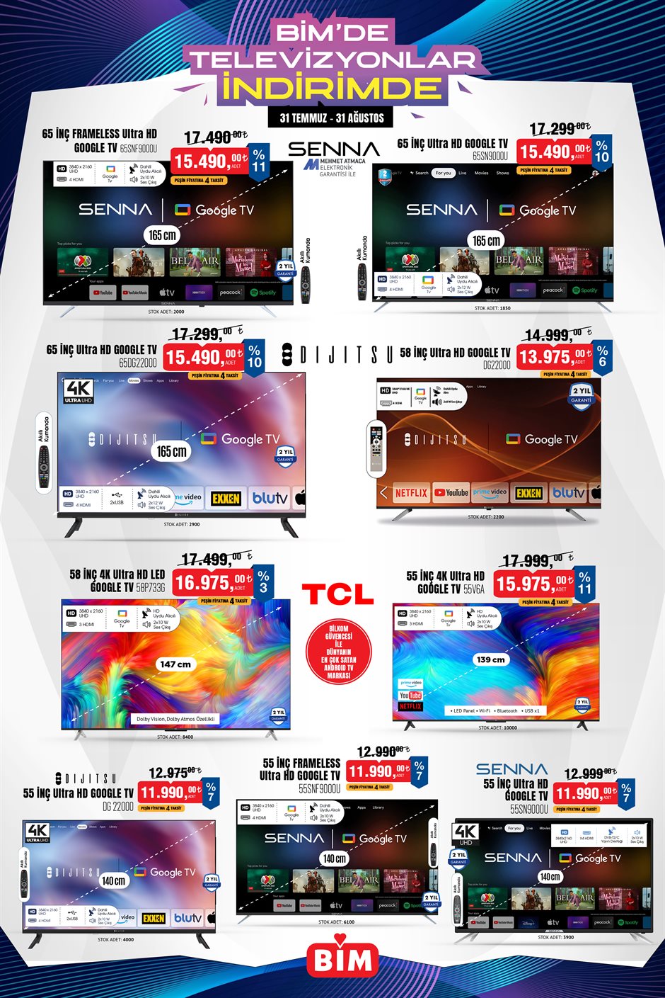 Bim Market 31 Temmuz ile 31 Ağustos 2024 Tarihleri arası Google Tv lerde Görünlmedik indirimlere gidiyor Büyükten Küçüğe tüm TVlerde yaptıkları indirmlerle Görenleri Bir daha Bakıtıyor 91 İlde tüm Bim Marketlerinde gecerli olacak Bim 31 Temmuz ile 31 Ağustos 2024 Özel Kataloğu Sizler İçin listeliyoruz.