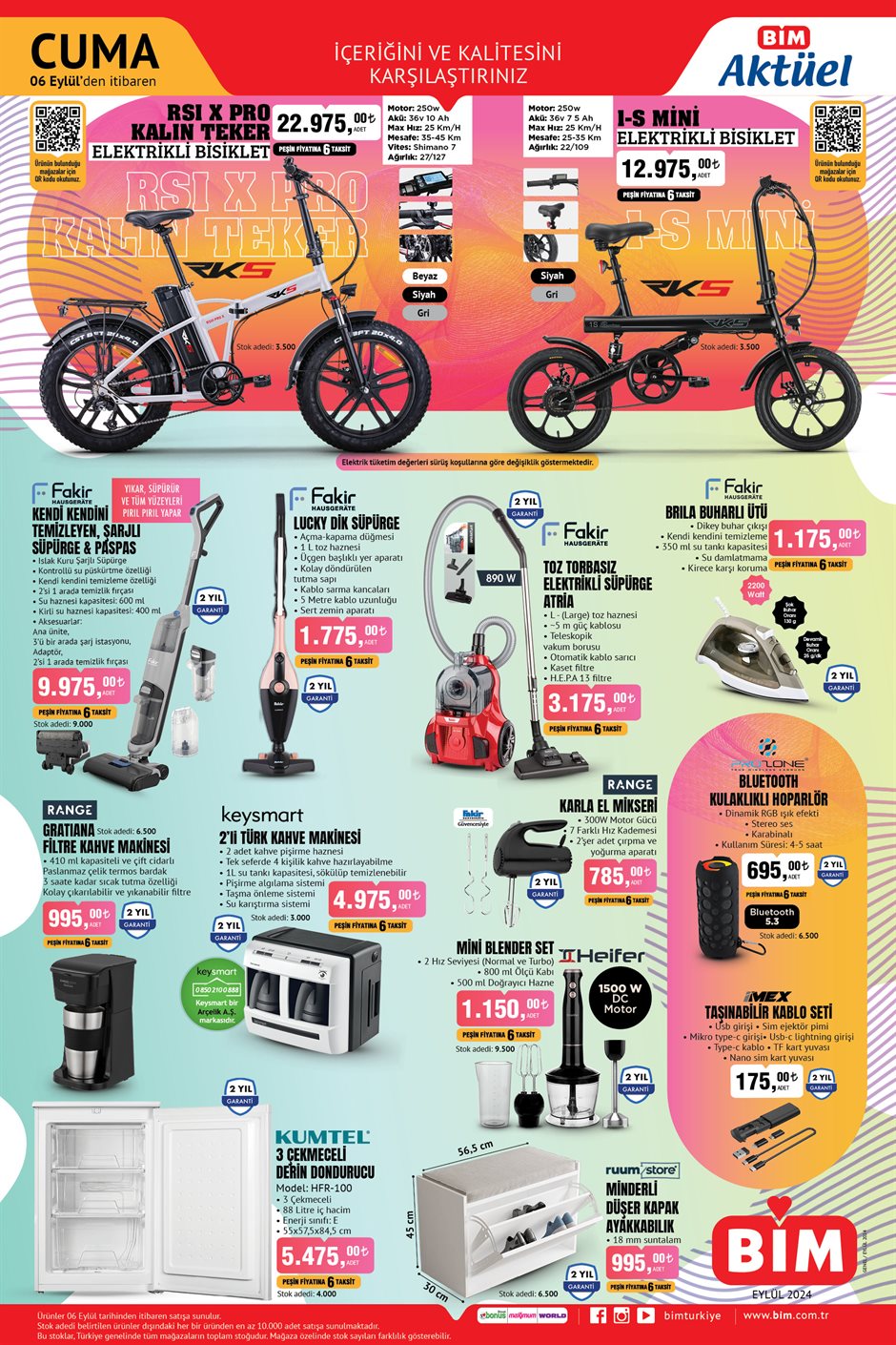 BİM 6 Eylül 2024 aktüel ürünler kataloğu yayınlandı. BİM’de bu hafta 6 Eylül 2024 tarihinde geçerli olacak aktüel ürünler kampanyasında yer alacak aktüel ürünler belli oldu. 6 Eylül Kataloğu ile BİM’e neler gelmiş hemen bakalım.