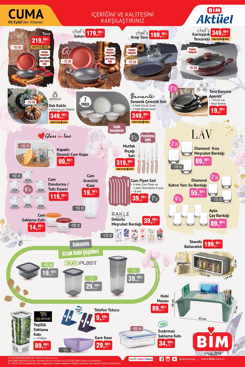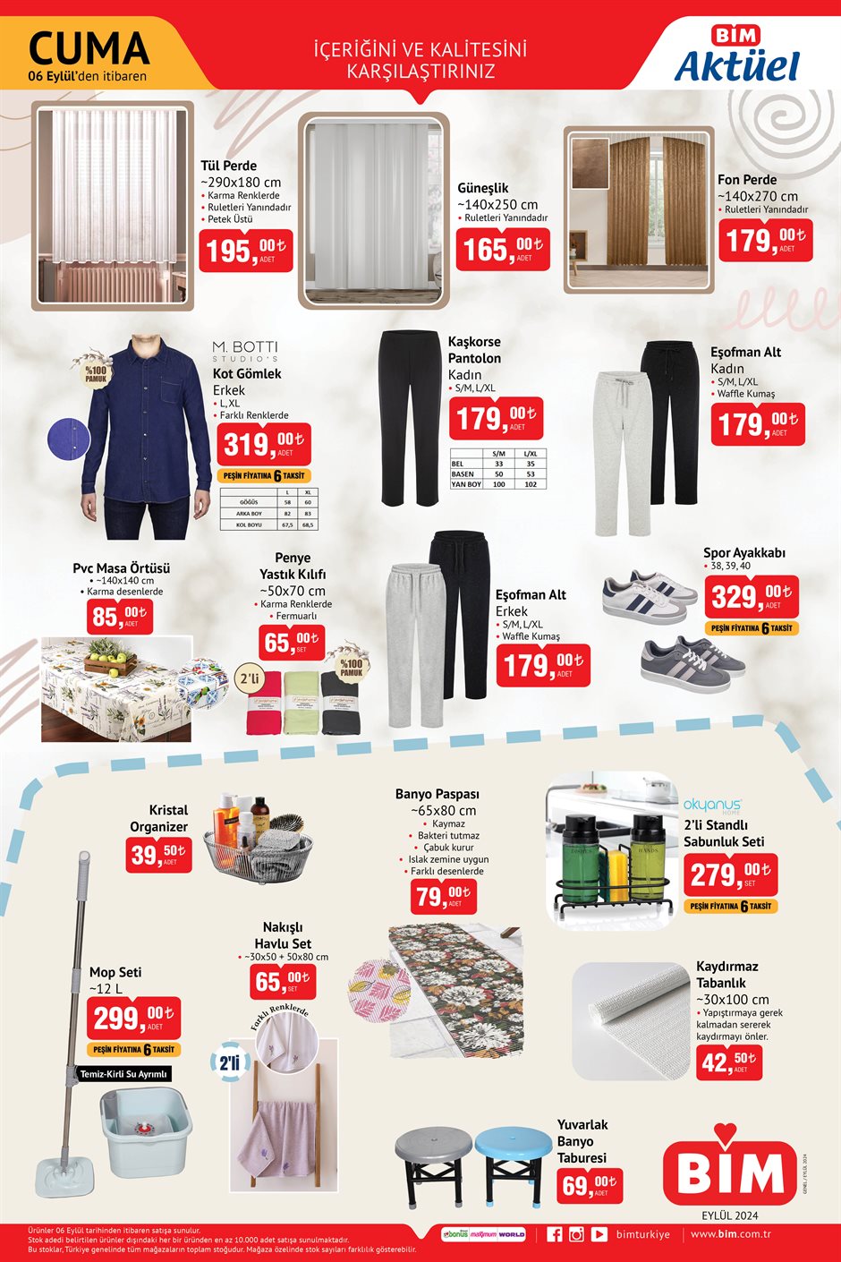 Yukarıda listelediğimiz aktüel ürünler ile BİM 6 Eylül 2024 Aktüel Ürünler Kataloğu incelememizi tamamladık. Gelecek hafta BİM 13 Eylül 2024 Aktüel Ürünler Kataloğu yine sitemizde sizlerle olacak. En güncel ve en yeni BİM Aktüel kampanyalarını sitemizden takip edebilirsiniz.