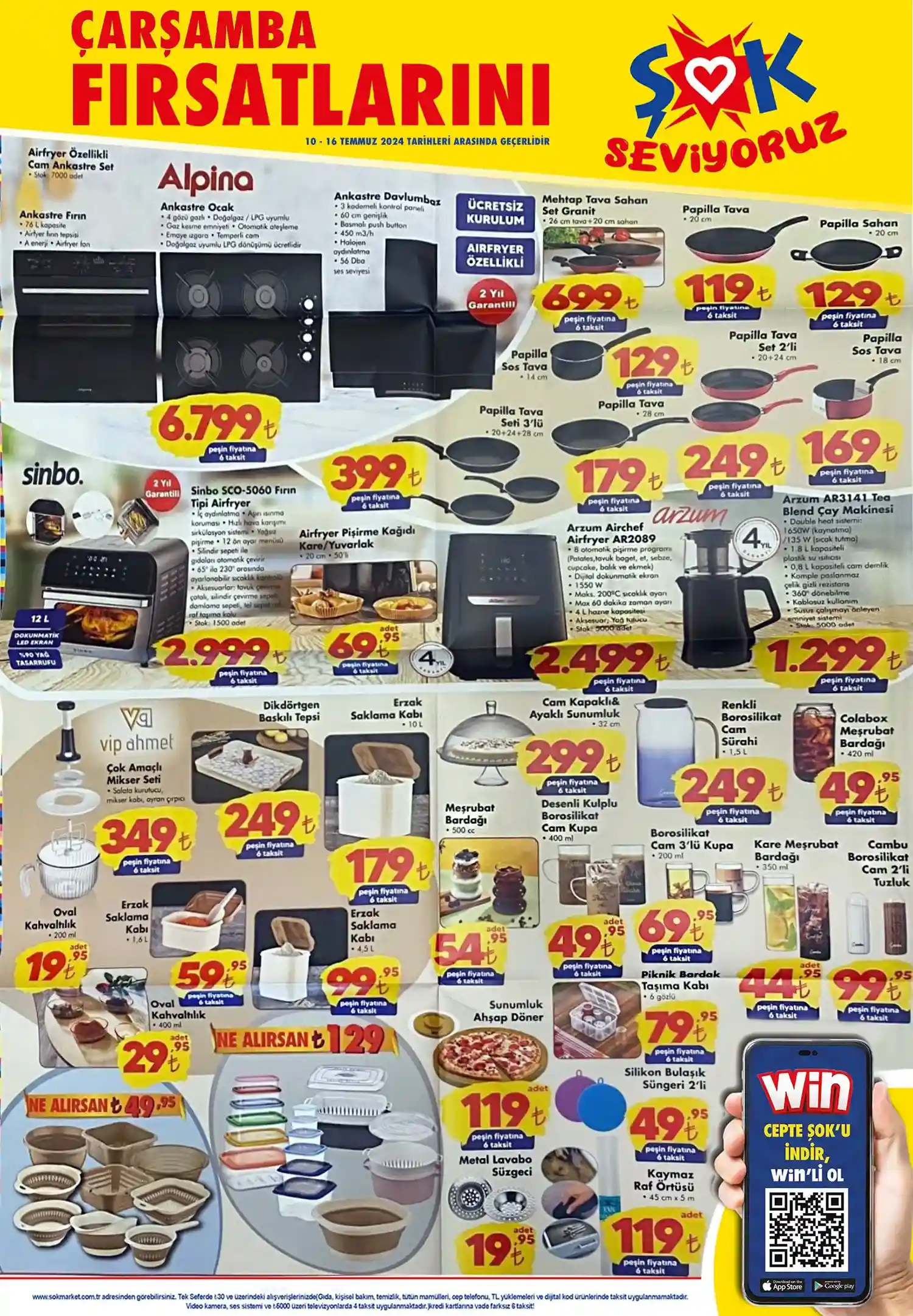 Şimdi Çarşamba gününden itibaren geçerli olacak ŞOK 10 Temmuz 2024 aktüel ürünler kataloğu ile gelecek ürünleri ve bu ürünlerin cazip fiyatlarını listeleyelim;