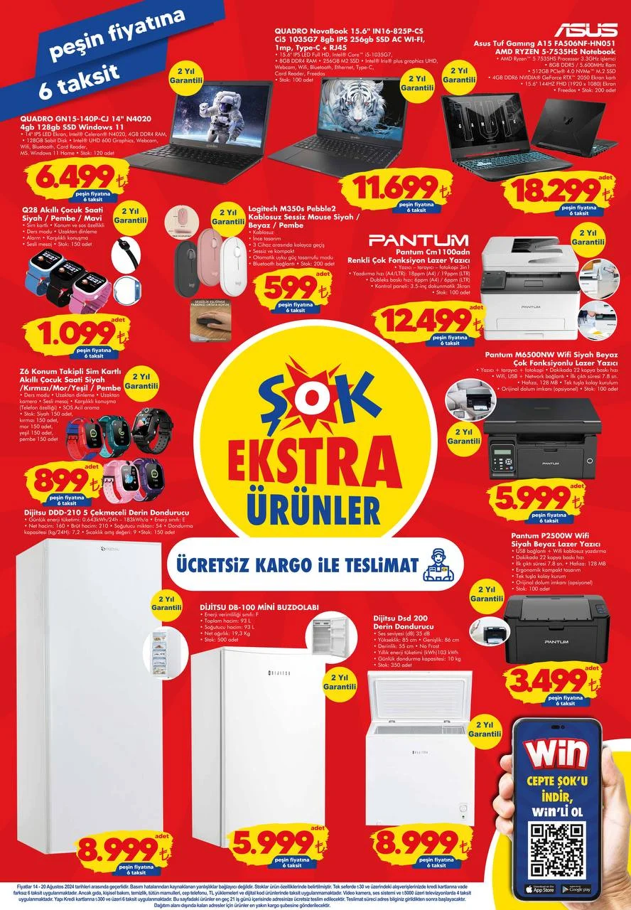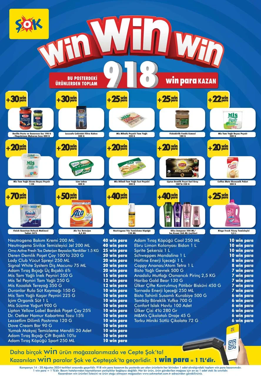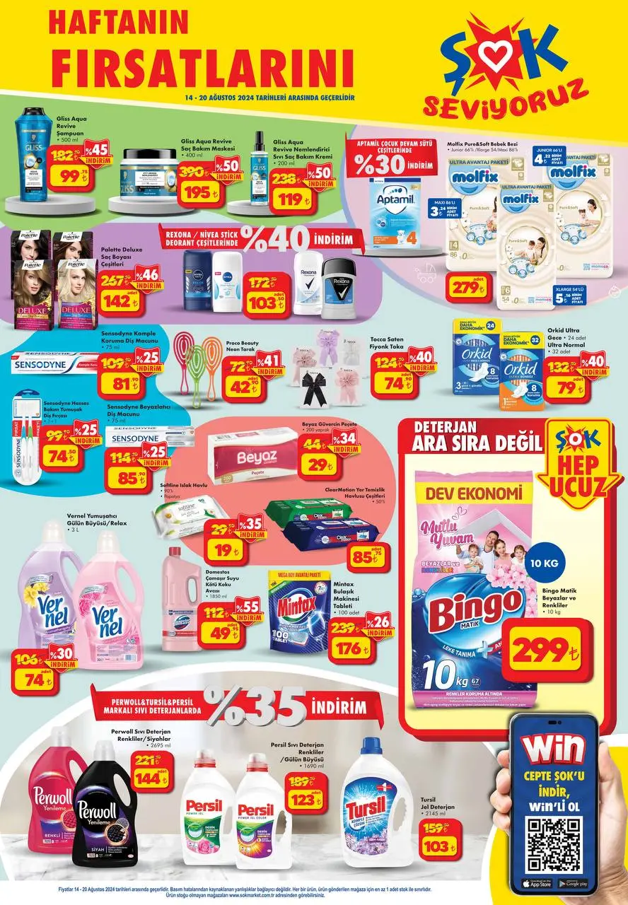 14 Ağustos ile 20 Ağustos Şok Kataloğu’da Olies Aque Şampuan: 18,24 TL,Gliss Aqua Revive: 50 adet x 390 TL,Rexona/Nivea Stick Deodorant Çeşitleri: %40 indirimli,Sensodyne: 109×25 adet x 7241 TL, 12440 TL, %40 indirimli,Aptamil Cocuk Deyam Sutu Çeşitleri: 4 adet x 238 TL,Molfix Bebek Bezi: Çeşitli ebatlarda ve fiyatlarda (195 TL, 119 TL gibi),Pulatto Dalane: 267 TL, %46 indirimli,Yumuşatıcı: Vernel, Mullu gibi markalarda ve farklı fiyatlarda,Perwoll, Persil, Tursil gibi markalı sıvı deterjanlar: %35 indirimli,Orkid Ultra: Farklı çeşitlerde ve fiyatlarda (32 TL, 81 TL gibi),Bingo Marik Beyazlar: 26 TL, fiyatla ilk dikkat çeken aktüel ürünler oluyor. ŞOK 14 Ağustos kataloğunda yer alan diğer aktüel ürünlere de hızlıca baklım.